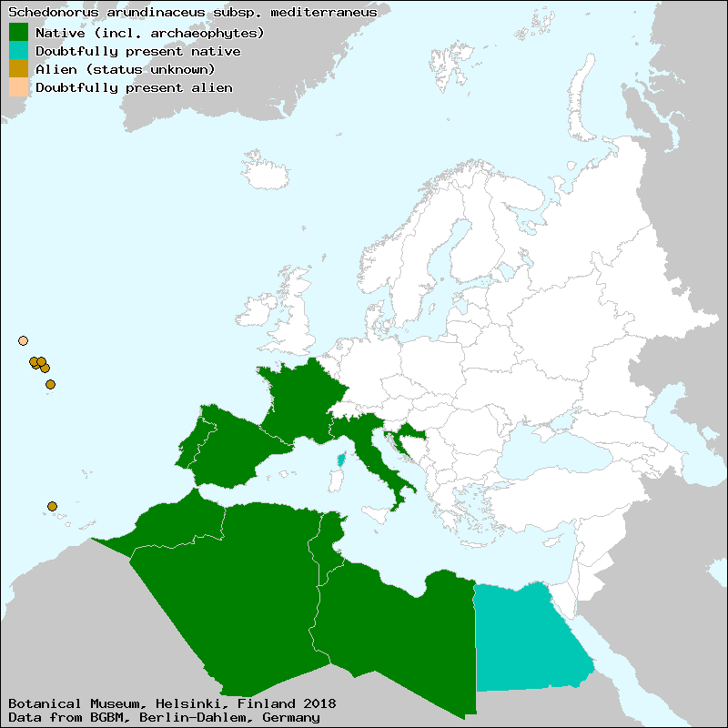 Foggi, B. & Müller, J. (2009): Schedonorus. – In: Valdés, B. & Scholz, H. (ed.); with contributions from Raab-Straube, E. von & Parolly, G.: Poaceae. Euro+Med Plantbase - the information resource for Euro-Mediterranean plant diversity. This work is licensed under a Creative Commons Attribution-ShareAlike 3.0 Unported license (CC-By-SA-3.0 Unported).