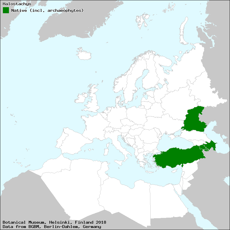 Piirainen, M. (2009): Halostachys. – In: Uotila, P. (ed.): Chenopodiaceae. Euro+Med Plantbase - the information resource for Euro-Mediterranean plant diversity. This work is licensed under a Creative Commons Attribution-ShareAlike 3.0 Unported license (CC-By-SA-3.0 Unported).