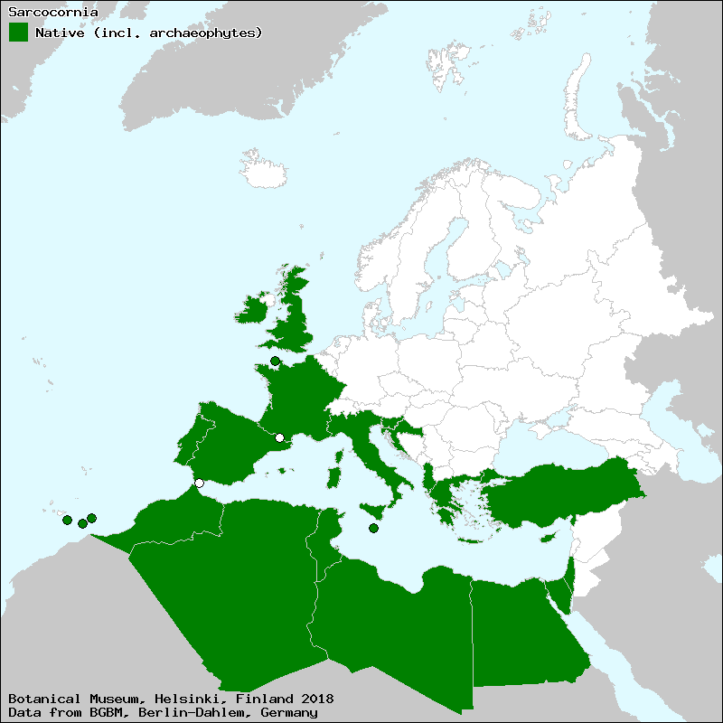 Piirainen, M. (2009): Sarcocornia. – In: Uotila, P. (ed.): Chenopodiaceae. Euro+Med Plantbase - the information resource for Euro-Mediterranean plant diversity. This work is licensed under a Creative Commons Attribution-ShareAlike 3.0 Unported license (CC-By-SA-3.0 Unported).