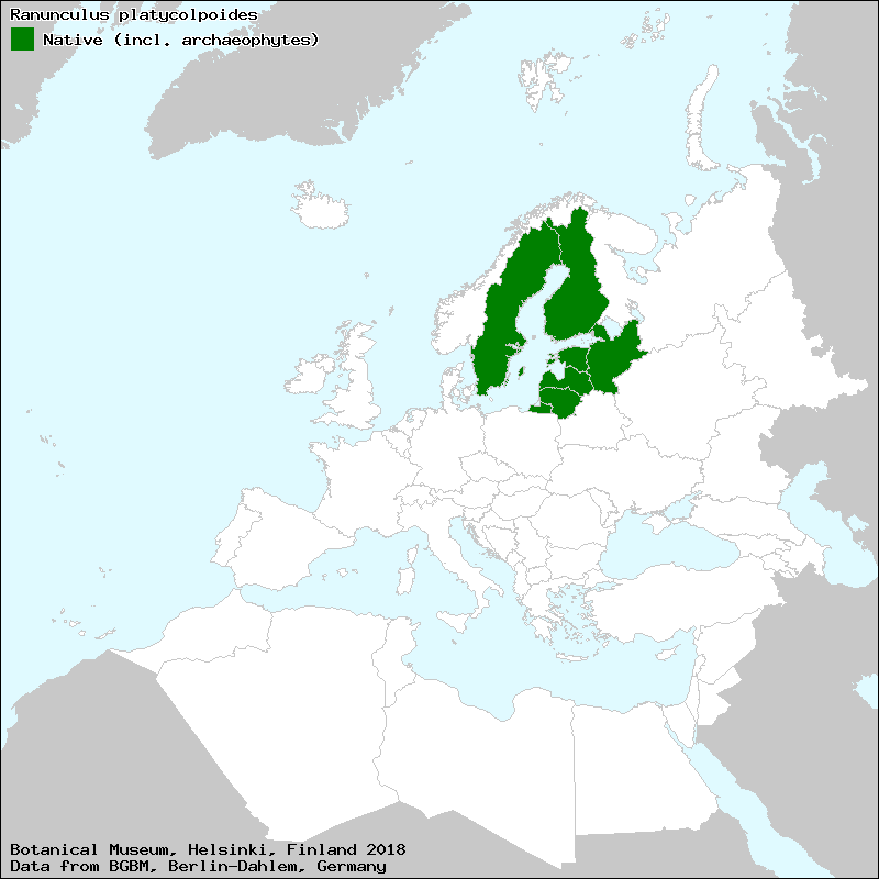 Hörandl, E. & Raab-Straube, E. von (2015): Ranunculeae. – In: Euro+Med Plantbase - the information resource for Euro-Mediterranean plant diversity. This work is licensed under a Creative Commons Attribution-ShareAlike 3.0 Unported license (CC-By-SA-3.0 Unported).