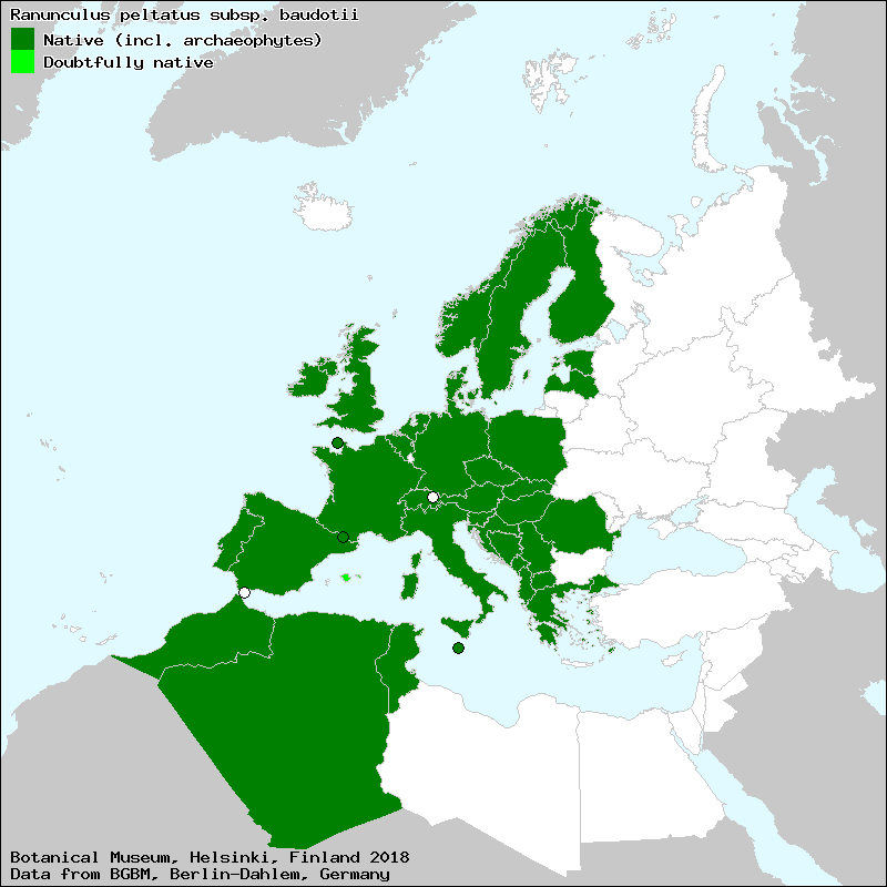 Hörandl, E. & Raab-Straube, E. von (2015): Ranunculeae. – In: Euro+Med Plantbase - the information resource for Euro-Mediterranean plant diversity. This work is licensed under a Creative Commons Attribution-ShareAlike 3.0 Unported license (CC-By-SA-3.0 Unported).