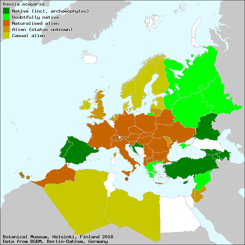 Bassia à balais (French), Bassie à balais (French), Belvédère (French), קוֹכְיַת הַמַּכְבֵּד (Israel (Hebrew)), Aedkohhia (Estonian), basia metlovitá (Slovak), basia metlovitá hustokvetá (Slovak), Bassie à balais (French), Belvedere (Italian), Besenkraut (German), Besen-Radmelde (German), bytel metlatý (Czech), bytel metlatý hustokvětý (Czech), Granata comune (Italian), kesäsypressi (Finnish), kostmelde (Norwegian), Micukthi si fshesë (Albanian), Navadni metlovec (Slovene), Põõsasmalts (Estonian), šibasta metlica (Croat), Sieversi kohhia (Estonian), sīversa kohija (Latvian), slotiņu kohija (Latvian), šluotelinė kochija (Lithuanian), sommarcypress (Swedish), sommercypres (Danish), Sommerzypresse (German), Studentenkruid (Dutch), Vesszős seprűfű (Hungarian), прутняк веничный (Russian), прутняк Сиверса (Russian), בסיית המכבד (Israel (Hebrew))[Credits] |