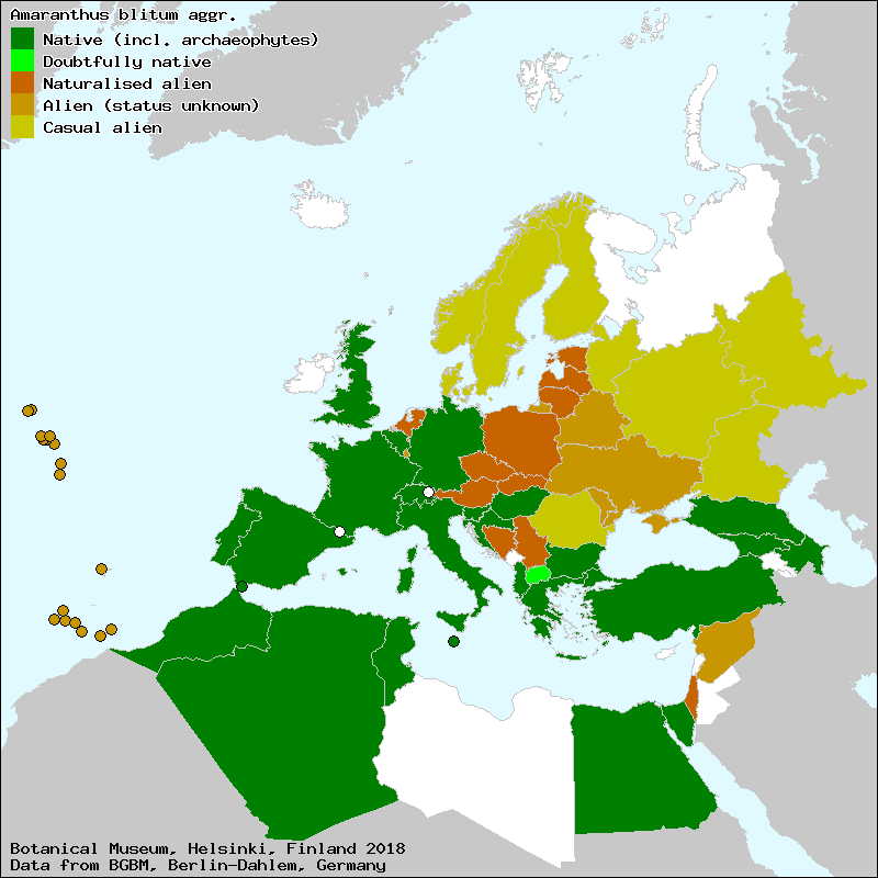 Source: Iamonico, D. (2015): Amaranthaceae. – In: Euro+Med Plantbase - the information resource for Euro-Mediterranean plant diversity.