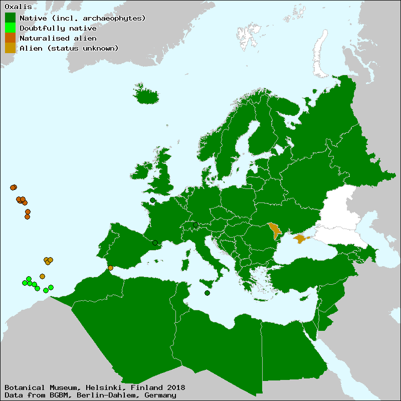 Source: Henning, T. & Raab-Straube, E. von (2016): Oxalidaceae. – In: Euro+Med Plantbase - the information resource for Euro-Mediterranean plant diversity.