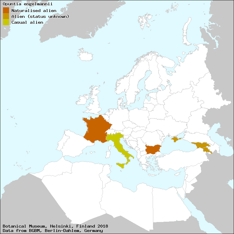 Korotkova, N. & Raab-Straube, E. von (2017): Cactaceae. – In: Euro+Med Plantbase - the information resource for Euro-Mediterranean plant diversity. This work is licensed under a Creative Commons Attribution-ShareAlike 3.0 Unported license (CC-By-SA-3.0 Unported).