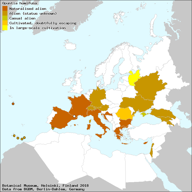 Korotkova, N. & Raab-Straube, E. von (2017): Cactaceae. – In: Euro+Med Plantbase - the information resource for Euro-Mediterranean plant diversity. This work is licensed under a Creative Commons Attribution-ShareAlike 3.0 Unported license (CC-By-SA-3.0 Unported).