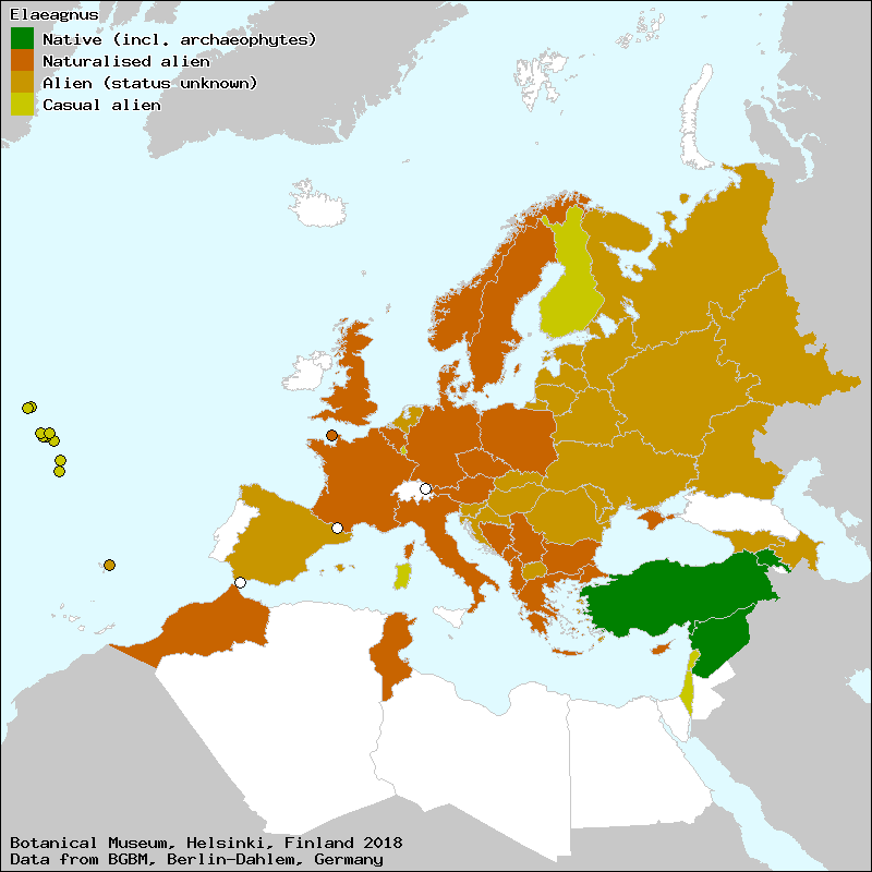 Source: Raab-Straube, E. von (2018): Elaeagnaceae. – In: Euro+Med Plantbase - the information resource for Euro-Mediterranean plant diversity.