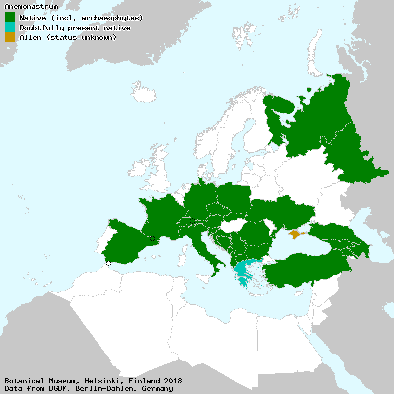 Raab-Straube, E. von, Hand, R., Hörandl, E. & Nardi, E. (2014+): Ranunculaceae. – In: Euro+Med Plantbase - the information resource for Euro-Mediterranean plant diversity. This work is licensed under a Creative Commons Attribution-ShareAlike 3.0 Unported license (CC-By-SA-3.0 Unported).