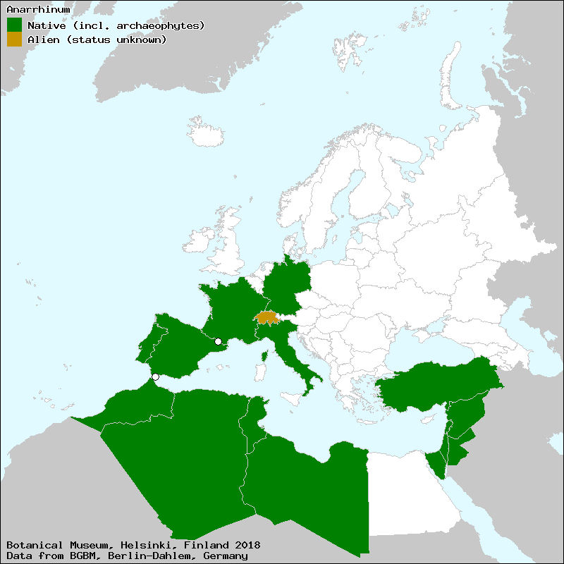 Source: Marhold, K. (2011+): Anarrhinum. – In: Euro+Med Plantbase - the information resource for Euro-Mediterranean plant diversity.