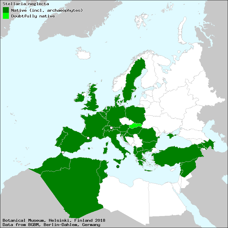 Звездчатка незамеченная (Russian), Աստղիկ չնկատվաց (Armenian), bokarv (Swedish), bøkearve (Norwegian), Brechlys Mwyaf (Welsh), Centocchio a fiori grandi (Italian), Fliodh mhór (Irish Gaelic), Greater Chickweed (English), Gwiazdnica zaniedbana (Polish), Heggevogelmuur (Dutch), herba paxareira (Galician), hviezdica nebadaná (Slovak), muruxa (Galician), pajarera (Spanish, Castillian), pamplina (Spanish, Castillian), Prezrta zvezdica (Slovene), ptačinec přehlížený (Czech), pyökkitähtimö (Finnish), Skov-Fuglegræs (Danish), Stelaria e papërfillur (Albanian), Stellaire négligée (French), Übersehene Sternmiere (German), zapostavljena mišjakinja (Croat), Στελλάρια η ατημέλητος (Greek), Едра звездица (Bulgarian), Мәҹһул ҹинҹилим (Azerbaijani)[Credits] |