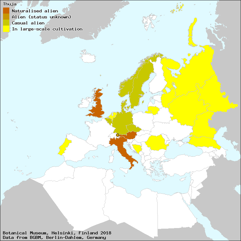 Source: Raab-Straube, E. von (2014): Gymnospermae. – In: Euro+Med Plantbase - the information resource for Euro-Mediterranean plant diversity.