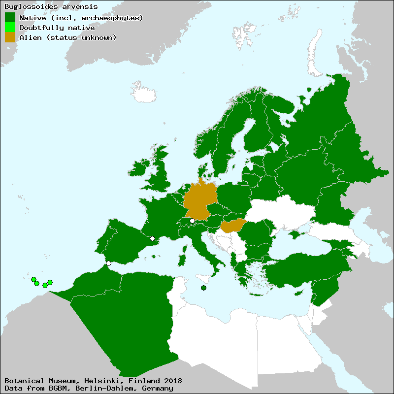 Included taxa: Buglossoides arvensis subsp. permixta (Jord.) R. Fern.