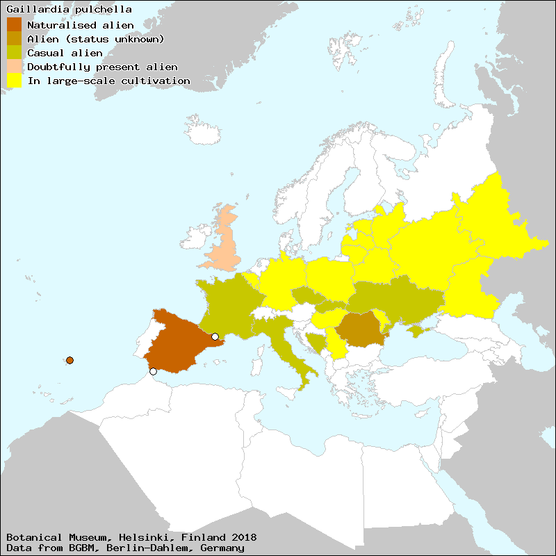 Gailardia nadobna (Polish), Gaillarde jolie (French), Kokarda sličná (Czech), Гайлардiя гарна (Ukraine), Гайярдия красивая (Russian), Флутурой фрумошь (Moldovian), gallàrdia (Catalan)[Credits] |