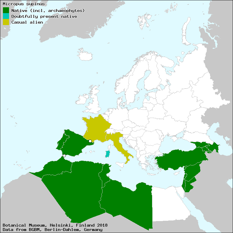 Bambagia supina (Italian), Сәпәләнк микропус (Azerbaijan), כָּתְנָן שָׂרוּעַ (Israel (Hebrew)), مِكْروبوس مُفْتَرِش (Arabic), blanquilla (Spanish, Castillian), lanilla en zarza (Spanish, Castillian), leontopodio do reyno (Portuguese), sedilla de Portugal (Spanish, Castillian), siempreviva pobre (Spanish, Castillian)[Credits] |