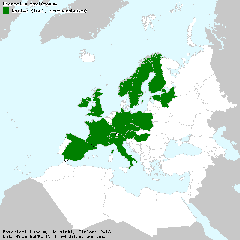 Jastrzębiec skalnicowaty (Polish), Kivirik-hunditubakas (Estonian), Ястребинка скальная (Russian), Steinbrech-Habichtskraut (German)[Credits] |