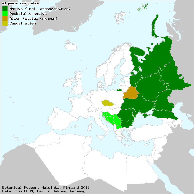 Άλυσσον το ραμφωτόν (Greek), Албицэ ростратэ (Moldovian), Бурачок носатий (Ukraine), Бурачок носатый (Russian), Дълггостьлбчест игловръх (Bulgarian)[Credits] |