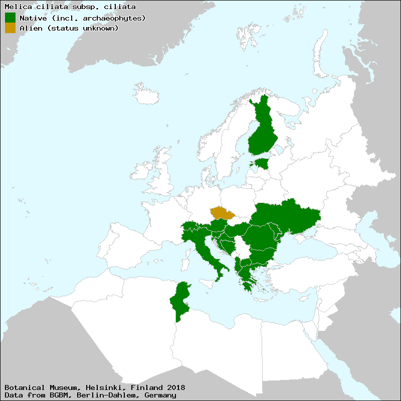 Source: Hempel, W. (2009): Melica. – In: Valdés, B. & Scholz, H. (ed.); with contributions from Raab-Straube, E. von & Parolly, G.: Poaceae. Euro+Med Plantbase - the information resource for Euro-Mediterranean plant diversity.