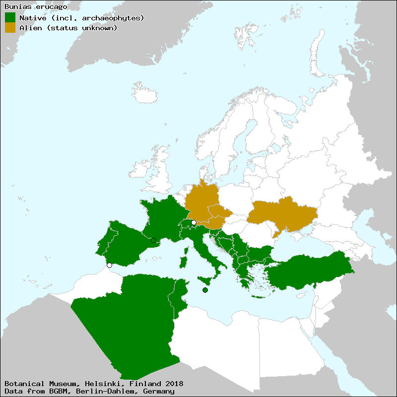 citró groc (Catalan), maça-de-bedel (Portuguese), mostacilla (Spanish, Castillian), mostallola (Catalan), muñidor (Spanish, Castillian), oreja rota (Spanish, Castillian), ravenissa (Catalan), sarabella (Galician), Βουνιάς ο ερουκώδης (Greek), Крилатоплодна свърбига (Bulgarian), Свербига польова (Ukraine), Свербига полевая (Russian)[Credits] |