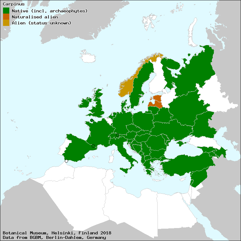 Source: Uotila, P. (2009): Corylaceae. – In: Euro+Med Plantbase - the information resource for Euro-Mediterranean plant diversity.
