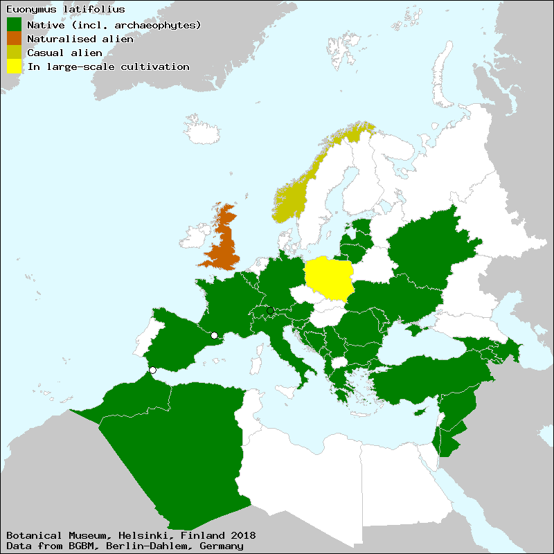 Raab-Straube, E. von (2018): Celastraceae. – In: Euro+Med Plantbase - the information resource for Euro-Mediterranean plant diversity. This work is licensed under a Creative Commons Attribution-ShareAlike 3.0 Unported license (CC-By-SA-3.0 Unported).