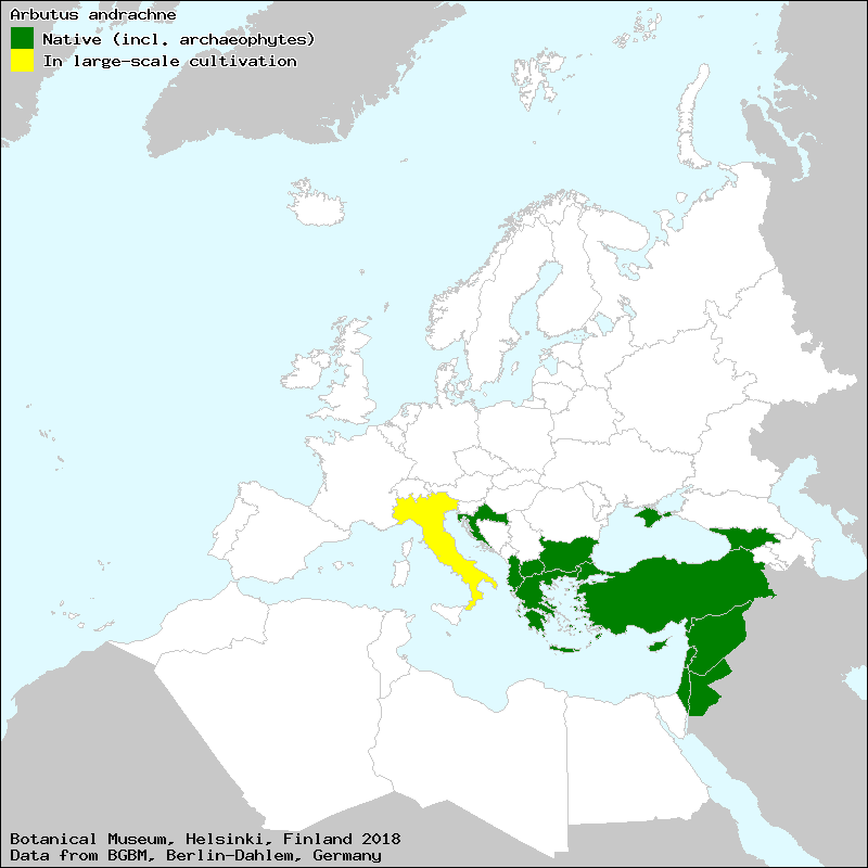 Αγριοκουμαριά (Greek), Άνδράκλα (Greek), Άνδρακλος (Greek), Άνδραχλος (Greek), Ανδροκουμαριά (Greek), Άντρακλα (Greek), Αντρουκλιά (Greek), Γλιστροκουμαριά (Greek), Κουκουμάτσι (Greek), Μπαμπουκλιά (Greek), Μπλετσαρία (Greek), Μπλετσοκουμαριά (Greek)[Credits] |