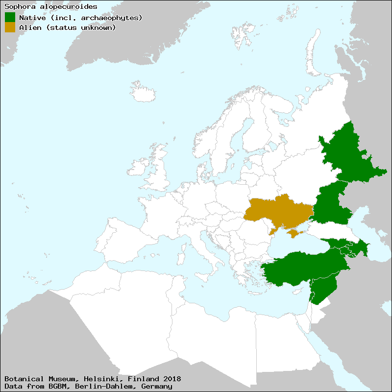 1990; and Alexandrovka village - M.Berezutsky, 1993, Alien to Saratov Province: railways near Polivanovka village - M.Berezutsky,, In "Flora URSS" & "Flora Sibiriae" it is treated as Sophora alopecuroides |