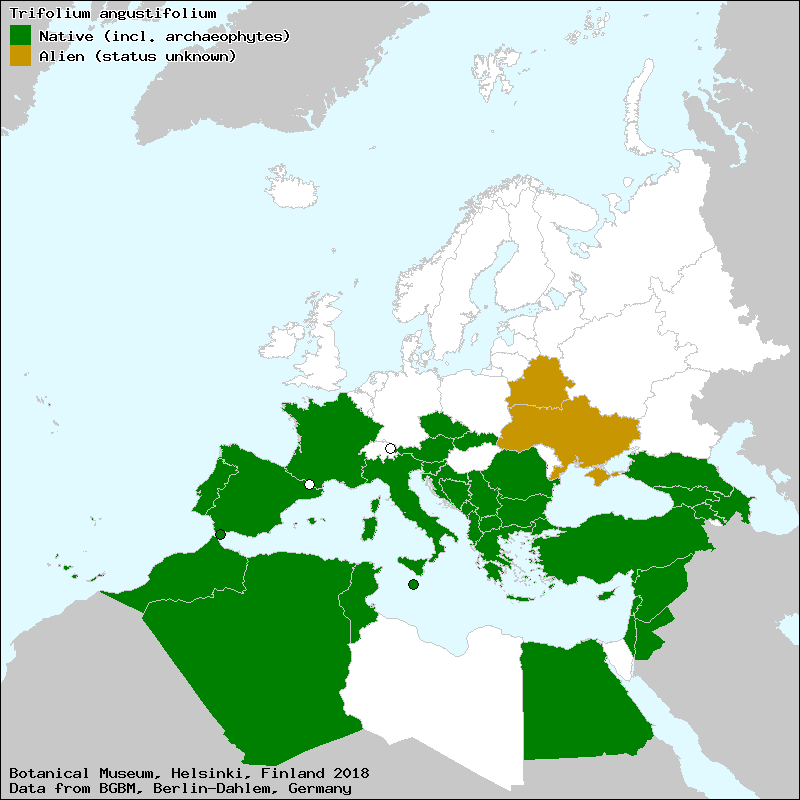 fe bord (Catalan), fe-bord (Catalan), fenc bord (Catalan), fenc bord (Majorcan), fenc bord (Valencian), fenc-bord (Catalan), fench bort (Catalan), hirusta (Euskera), jisopo (Spanish, Castillian), jopito (Spanish, Castillian), jopitos (Spanish, Castillian), jopo de zorra (Spanish, Castillian), Klever Uzkolistnyi (Russian), Narrow Clover (English), Narrow-Leaved Clover (English), pie de liebre granadina (Spanish, Castillian), pie de liebre mayor (Spanish, Castillian), pie de liebre mayor de hojas estrechas (Spanish, Castillian), rabo de gato (Portuguese), rabo de raposa (Portuguese), rabo-de-gato (Portuguese), Schmalblattriger Klee (German), trebo (Galician), trébol (Spanish, Castillian), trébol de hoja estrecha (Spanish, Castillian), trébol de zorra (Spanish, Castillian), trebuls (Majorcan), trevo de fôlhas estreitas (Portuguese), trevo-de-folhas-estreitas (Portuguese), trèvol (Catalan), trèvol de fulla estreta (Catalan), trèvol de fulla estreta (Majorcan), trèvol estret (Catalan), trevo-massaroco (Portuguese)[Credits] |