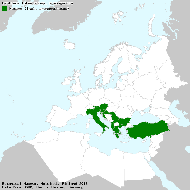Homotypic synonyms: Gentiana lutea var. symphyandra Murb.