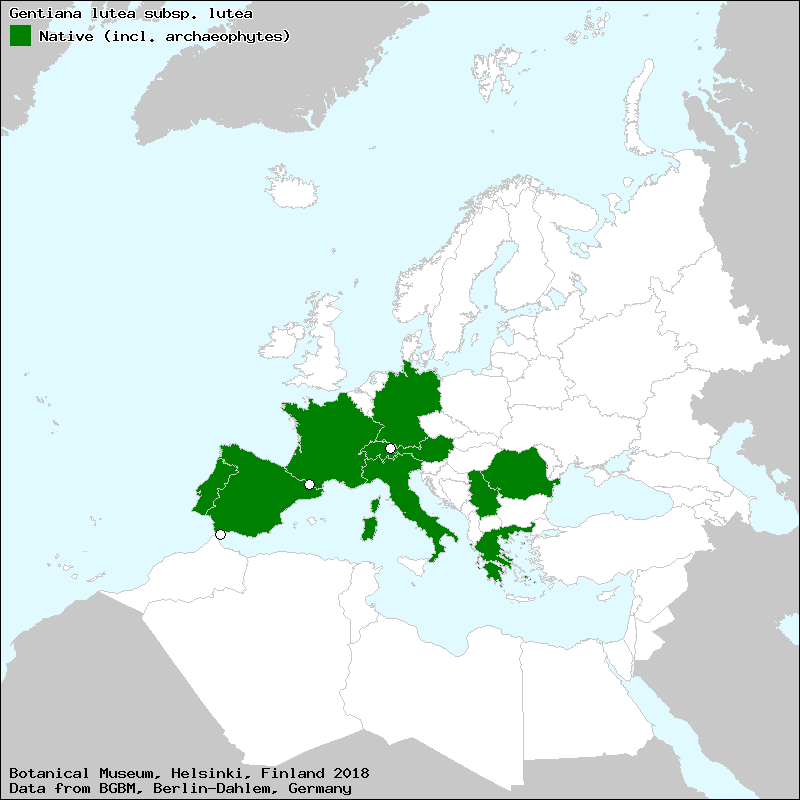 Source: Marhold, K. (2011): Gentianaceae. – In: Euro+Med Plantbase - the information resource for Euro-Mediterranean plant diversity.