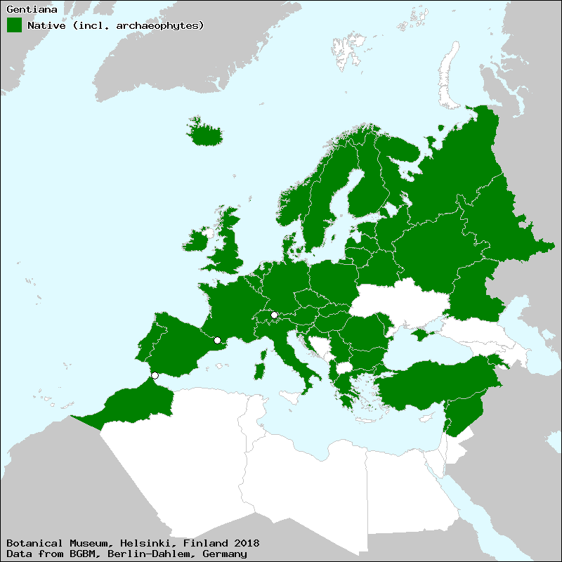 Source: Marhold, K. (2011): Gentianaceae. – In: Euro+Med Plantbase - the information resource for Euro-Mediterranean plant diversity.