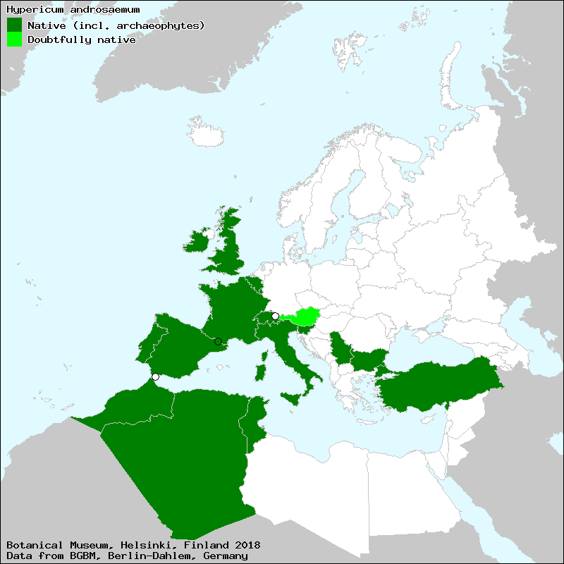 alfavaca da cobra (Galician), androsaemo (Galician), androsemo (Aragonese), androsemo (Galician), androsemo (Portuguese), androsemo (Spanish, Castillian), avelao (Galician), avelao (Portuguese), castelar (Asturian), castellar (Spanish, Castillian), cura-ho-tot (Catalan), cura-ho-tot (Spanish, Castillian), curalotodo (Spanish, Castillian), curalotot (Catalan), erva-da-pedra (Galician), erva-da-pedra (Portuguese), erva-do-gerês (Galician), erva-do-gerês (Portuguese), erva-mijadeira (Portuguese), flor de castellar (Asturian), fueya del castellanu (Asturian), fueya del castellar (Asturian), fueya la mora (Asturian), fullas de balsam (Catalan), fulles d´orval (Catalan), fulles de bàlsam (Catalan), fulles de bàlsam d´orval (Catalan), fulles de llaga (Catalan), herba da pedra (Galician), herba la Mora (Asturian), hipericâo (Portuguese), hipericâo-do-Gerês (Portuguese), hipericão-do-gerês (Portuguese), hipérico (Portuguese), hoja de castelar (Asturian), hoja de castellar (Asturian), hoja del castellanu (Asturian), insulina (Asturian), león franco (Spanish, Castillian), mijadeira (Galician), mijadeira (Portuguese), orkacha belarra (Euskera), orkatx (Euskera), orkatxa (Euskera), orovale (Spanish, Castillian), orval (Catalan), pericón (Spanish, Castillian), pericón siciliano (Spanish, Castillian), planta del libru (Asturian), planta la Vela (Asturian), sanalotodo (Spanish, Castillian), suelda (Asturian), toda boa (Galician), todabuena (Spanish, Castillian), todasana (Spanish, Castillian), todosana (Spanish, Castillian), tortolina (Asturian), totabona (Catalan), tresflorina acanalada (Catalan), tresflorina acanalada (Majorcan), turrum-bedarr (Euskera), turrumo bedarr (Euskera), zubón (Spanish, Castillian), zubón franco (Spanish, Castillian)[Credits] |