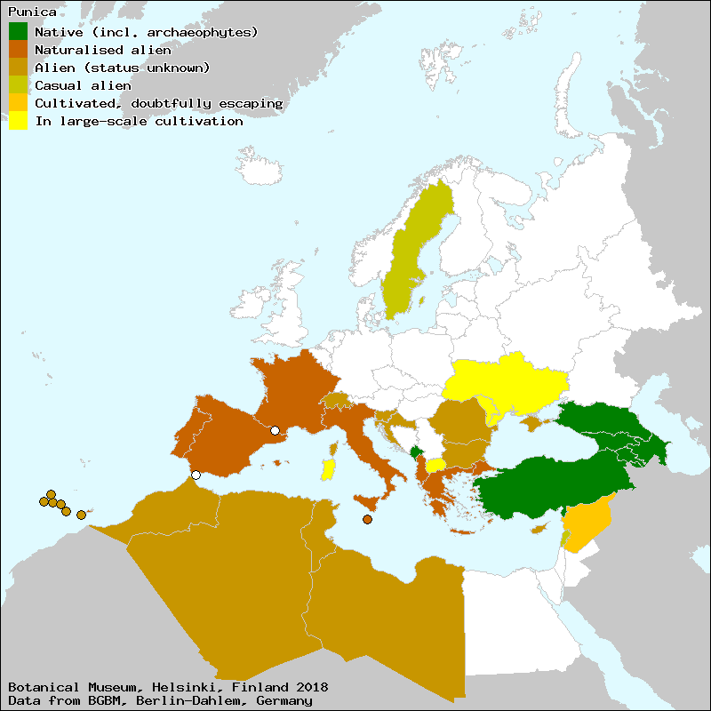 Source: Raab-Straube, E. von (2016): Punica. – In: Euro+Med Plantbase - the information resource for Euro-Mediterranean plant diversity.