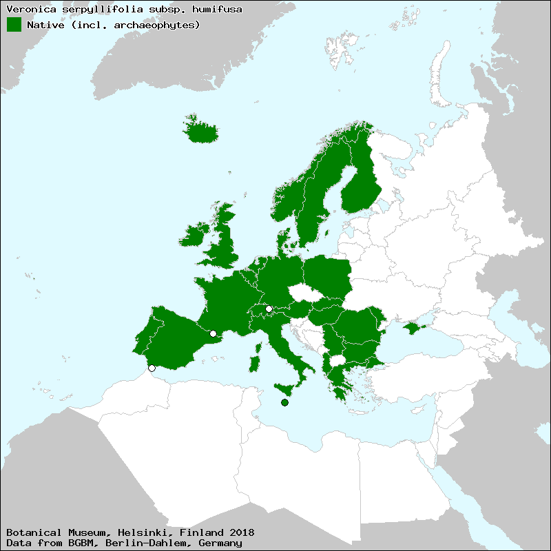 Marhold, K. (2011+): Veronica. – In: Euro+Med Plantbase - the information resource for Euro-Mediterranean plant diversity. This work is licensed under a Creative Commons Attribution-ShareAlike 3.0 Unported license (CC-By-SA-3.0 Unported).
