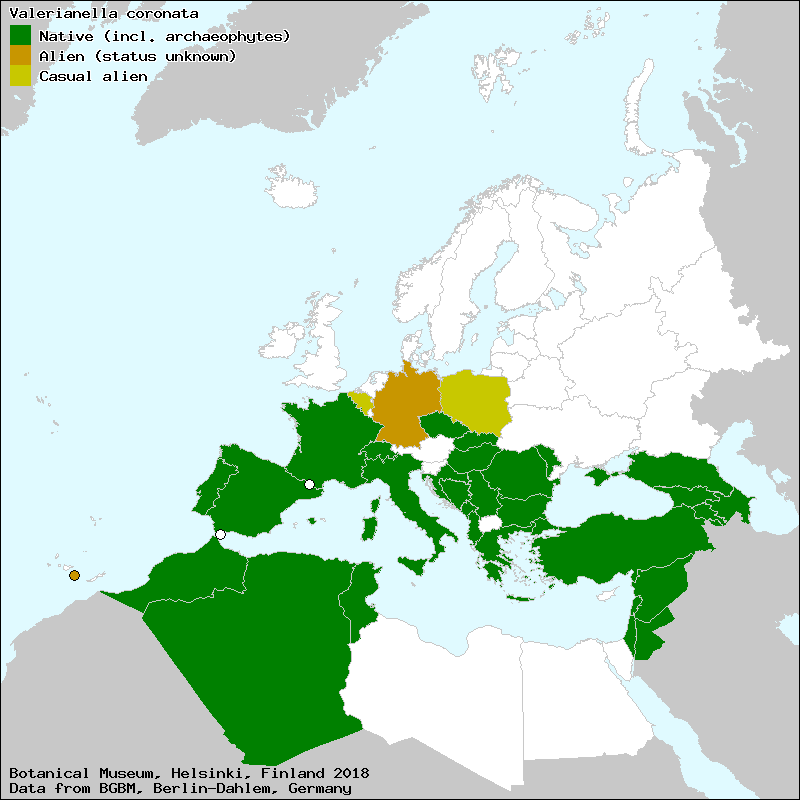 Source: Raab-Straube, E. von (2017+): Valerianella. – In: Raab-Straube, E. von & Henning, T. (2017+): Valerianaceae. Euro+Med Plantbase - the information resource for Euro-Mediterranean plant diversity.
