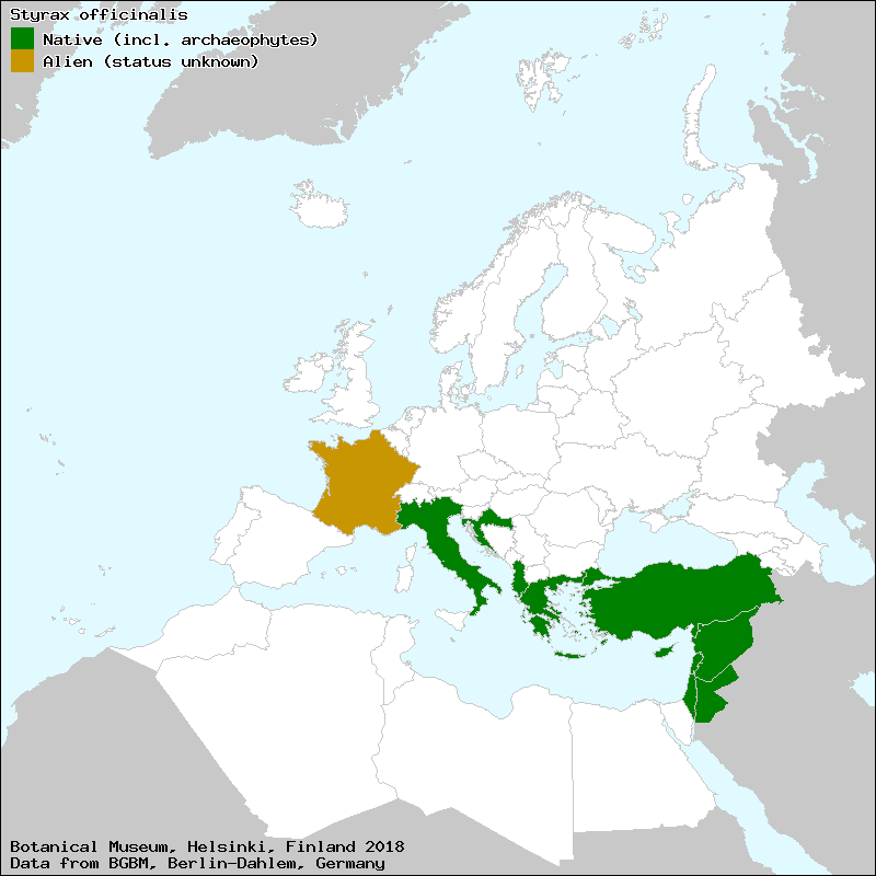 Source: Jury, S. (2009): Styracaceae. – In: Euro+Med Plantbase - the information resource for Euro-Mediterranean plant diversity.