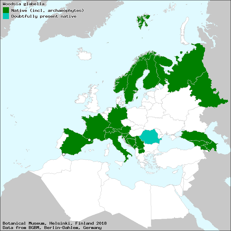 Dværg-Frynsebregne (Danish), dvärghällebräken (Swedish), dverglodnebregne (Norwegian), kaljukiviyrtti (Finnish), snoðfætla (Icelandic), вудсия гладкая (Russian), вудсия гладковатая (Russian), Һамар вудсия (Azerbaijan)[Credits] |