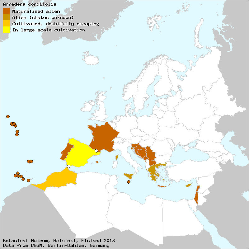 Uotila, P. (2009): Basellaceae. – In: Euro+Med Plantbase - the information resource for Euro-Mediterranean plant diversity. This work is licensed under a Creative Commons Attribution-ShareAlike 3.0 Unported license (CC-By-SA-3.0 Unported).