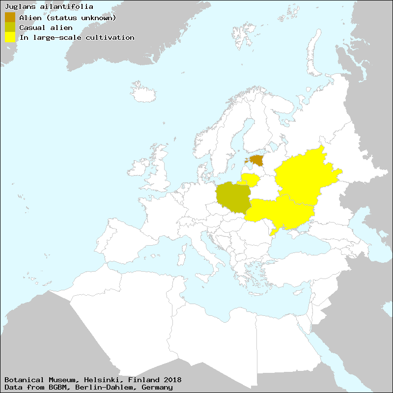 Uotila, P. (2011): Juglandaceae. – In: Euro+Med Plantbase - the information resource for Euro-Mediterranean plant diversity. This work is licensed under a Creative Commons Attribution-ShareAlike 3.0 Unported license (CC-By-SA-3.0 Unported).