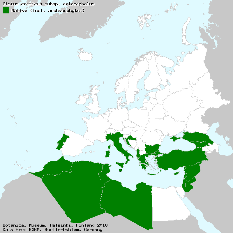 "Cistus villosus" sec. WEBB, D. A. - The Flora of European Turkey. Royal Irish Academy, Dublin, 1966. Proc. Roy. Irish Acad. 65/B/1: [1]-100. |