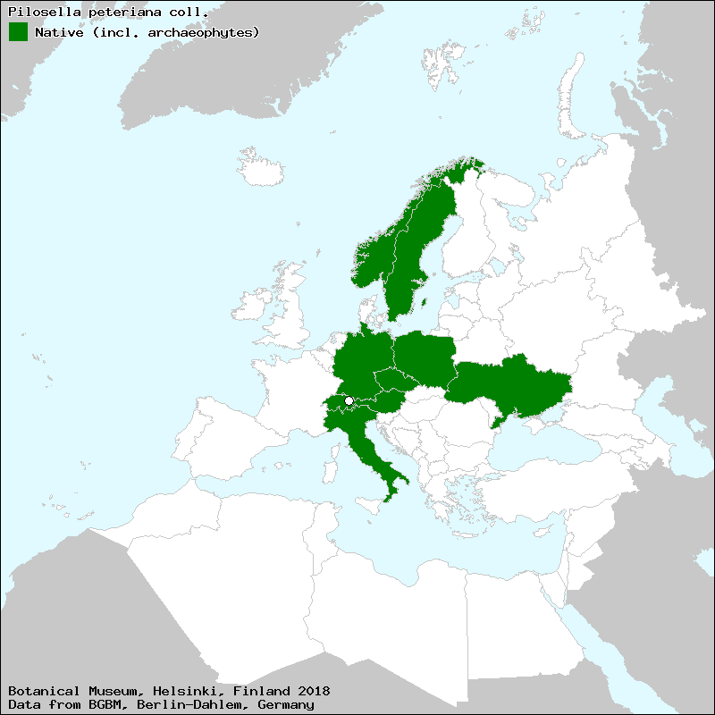 Source: Bräutigam, S. & Greuter, W. (2007-2009): Pilosella. – In: Greuter, W. & Raab-Straube, E. von (ed.): Compositae. Euro+Med Plantbase - the information resource for Euro-Mediterranean plant diversity.