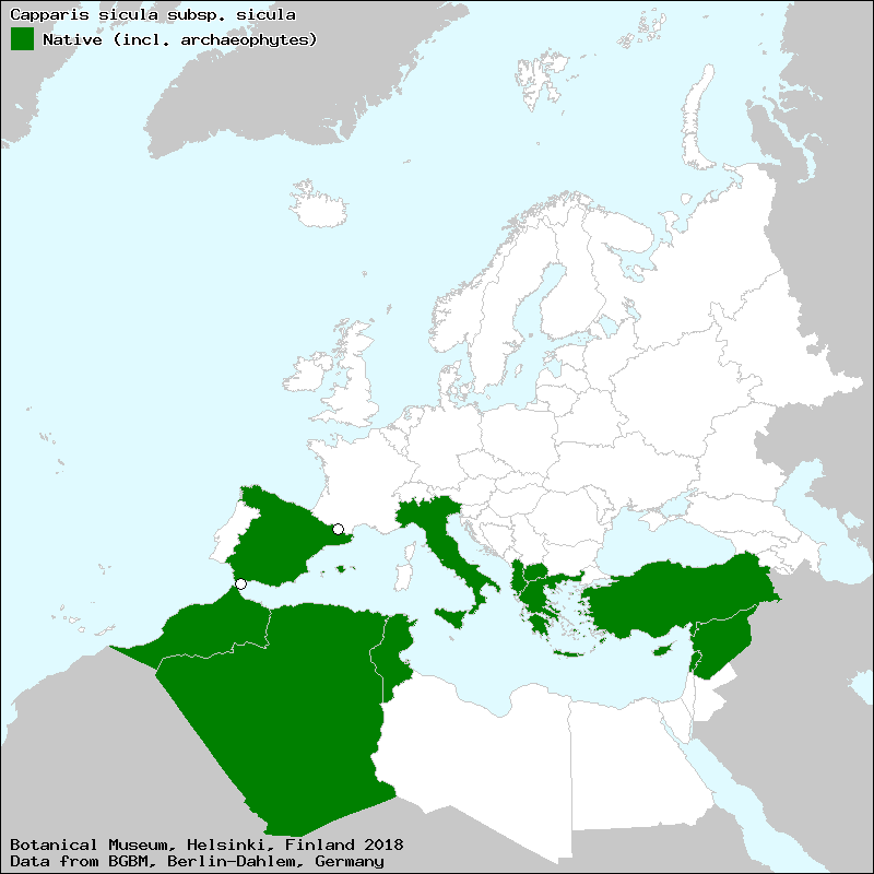 Source: Uotila, P. (2011): Capparaceae. – In: Euro+Med Plantbase - the information resource for Euro-Mediterranean plant diversity.