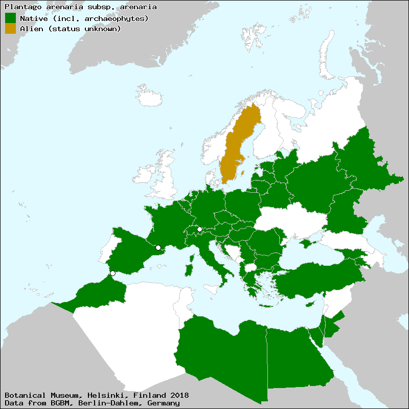 Source: Marhold, K. (2011+): Plantago. – In: Euro+Med Plantbase - the information resource for Euro-Mediterranean plant diversity.