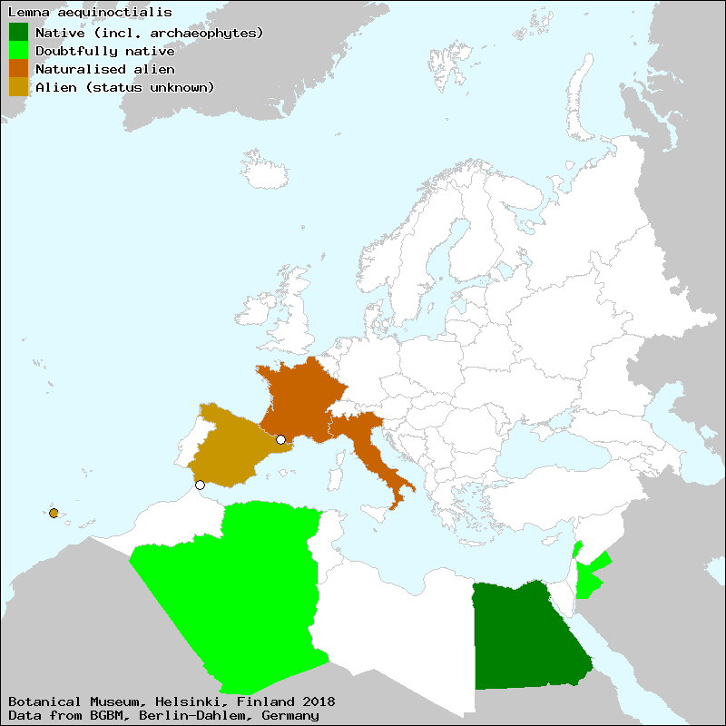 Source: Uotila, P. (2009): Lemnaceae. – In: Euro+Med Plantbase - the information resource for Euro-Mediterranean plant diversity.