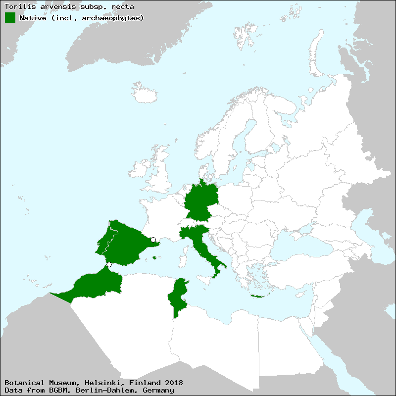 "Torilis arvensis (Huds.) Link subsp. arvensis" sec. Jahn, R. & Schönfelder, P. - Exkursionsflora für Kreta Stuttgart 1995. |