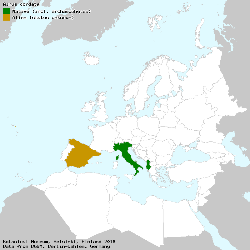 Heterotypic synonyms: Alnus cordata Desf., nom. nud.