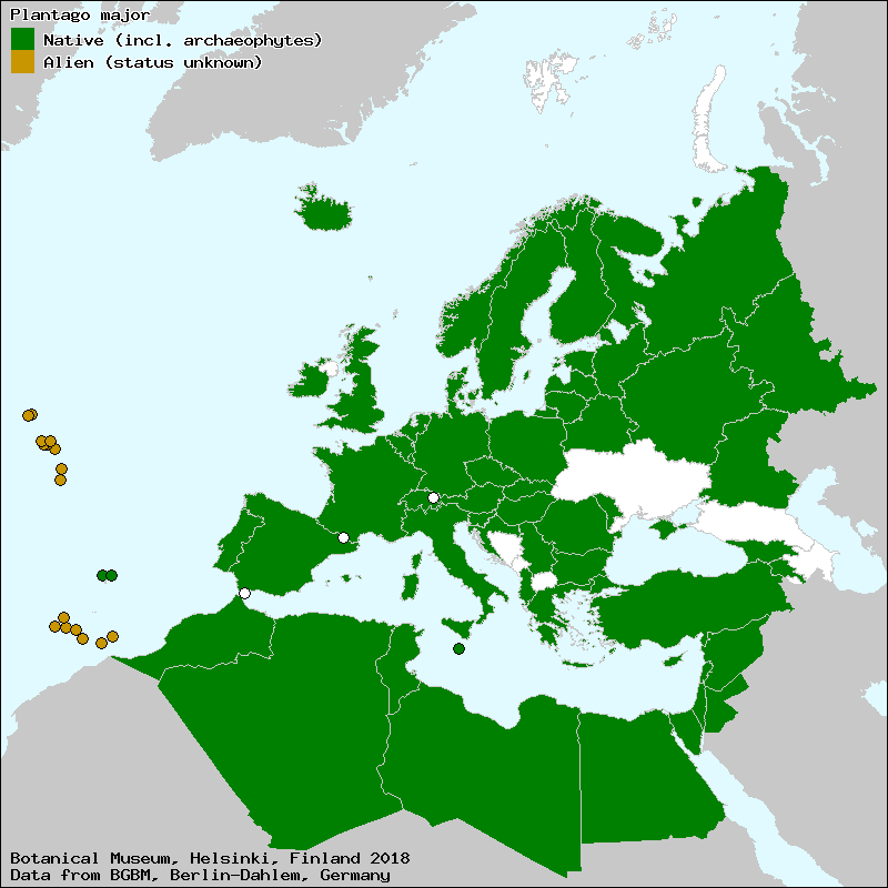 Marhold, K. (2011+): Plantago. – In: Euro+Med Plantbase - the information resource for Euro-Mediterranean plant diversity. This work is licensed under a Creative Commons Attribution-ShareAlike 3.0 Unported license (CC-By-SA-3.0 Unported).