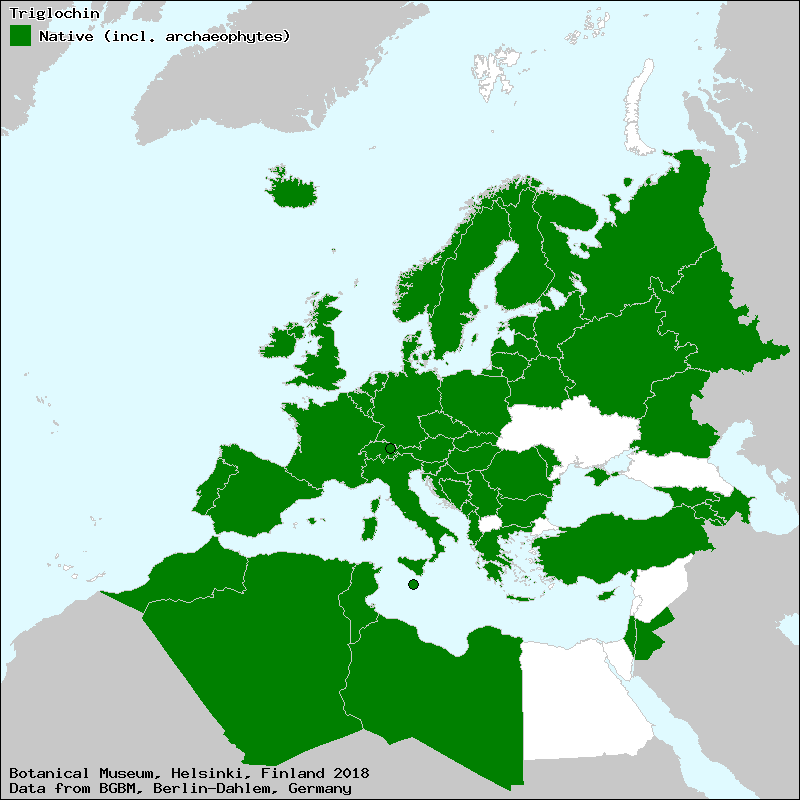 Source: Uotila, P. (2009): Juncaginaceae. – In: Euro+Med Plantbase - the information resource for Euro-Mediterranean plant diversity.