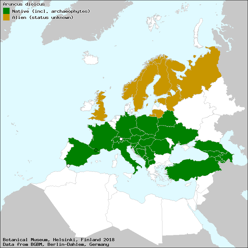 arunco (Portuguese), aruncus (Catalan), barba de cabra (Spanish, Castillian), barba de cabrón (Spanish, Castillian), Αρούγκος ο δασικός (Greek)[Credits] |