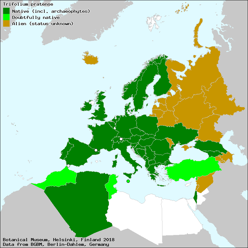 Comments: In "Flora Kavkaza" this taxon is treated as T. pratense var. lenkoranicum, Local endemic to Talysh, Native of Europe and northern Asia., Udmurtia: Izhevsk, Sarapul, Adam & Solodyr, Widely cultivated as a forage plant, Widely cultivated as a forage plant.