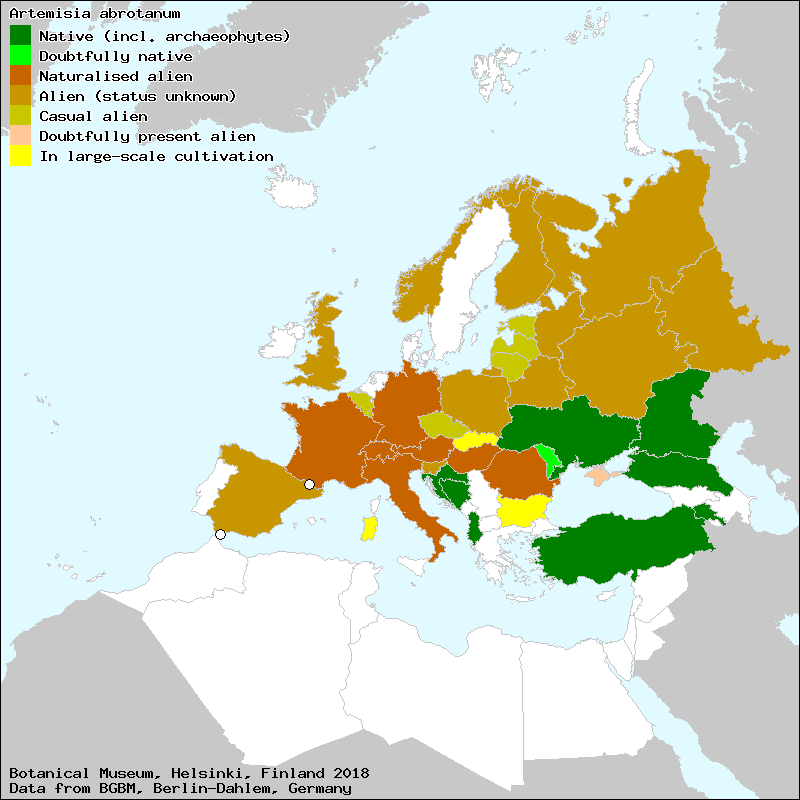 Aaprottimaruna (Finnish), Abrašica (Slovene), Abrodd (Norwegian), Åbrodd (Swedish), Abrotano (Italian), Abrotono (Italian), Armoise Aurone (French), Armoise citronnelle (French), Aurone mâle (French), Aurone (French), Bylica Boże drzewko (Polish), Citronelle (French), Ebbereis (German), Eberraute (German), Eberreis (German), Palina abrotská (Slovak), Pelyněk brotan (Czech), Stabwurz (German), Божье дерево (Russian), Пелин звелт (Moldovian), Полин лiкарський (Ukraine), Полынь лечебная (Russian), Օշինդր բուժիչ (Armenian), abròtan (Catalan), abrótano (Spanish, Castillian), abrótano (Valencian), abrótano campestre (Spanish, Castillian), abrótano macho (Aragonese), abrótano macho (Portuguese), abrótano macho (Spanish, Castillian), alsuila (Spanish, Castillian), artemisa (Catalan), Aurone (French), bálsamo verde (Spanish, Castillian), boja (Spanish, Castillian), botja (Catalan), broida (Catalan), broida (Valencian), broida vera (Catalan), broina (Catalan), brótano (Spanish, Castillian), broyda rojenca (Catalan), chichare belarra (Euskera), chichari-belarra (Euskera), citronella maior (Portuguese), Citronelle (French), donzell (Catalan), escoba mujeriega (Spanish, Castillian), espernallac (Catalan), herba cuquera (Catalan), herva lombrigueira (Portuguese), hierba lombriguera (Spanish, Castillian), lombricera (Spanish, Castillian), lombrigueira (Portuguese), mamecas (Spanish, Castillian), matocas (Spanish, Castillian), mesariegas (Spanish, Castillian), mota-belar (Euskera), tomillo de cabezuela (Spanish, Castillian), tomillo perruno (Spanish, Castillian), yerba lombriguera (Spanish, Castillian), yerba lombriguera macho (Spanish, Castillian), zizare-belar limoiusain (Euskera), zizari-belarra (Euskera)[Credits] |